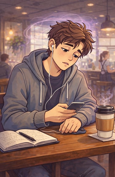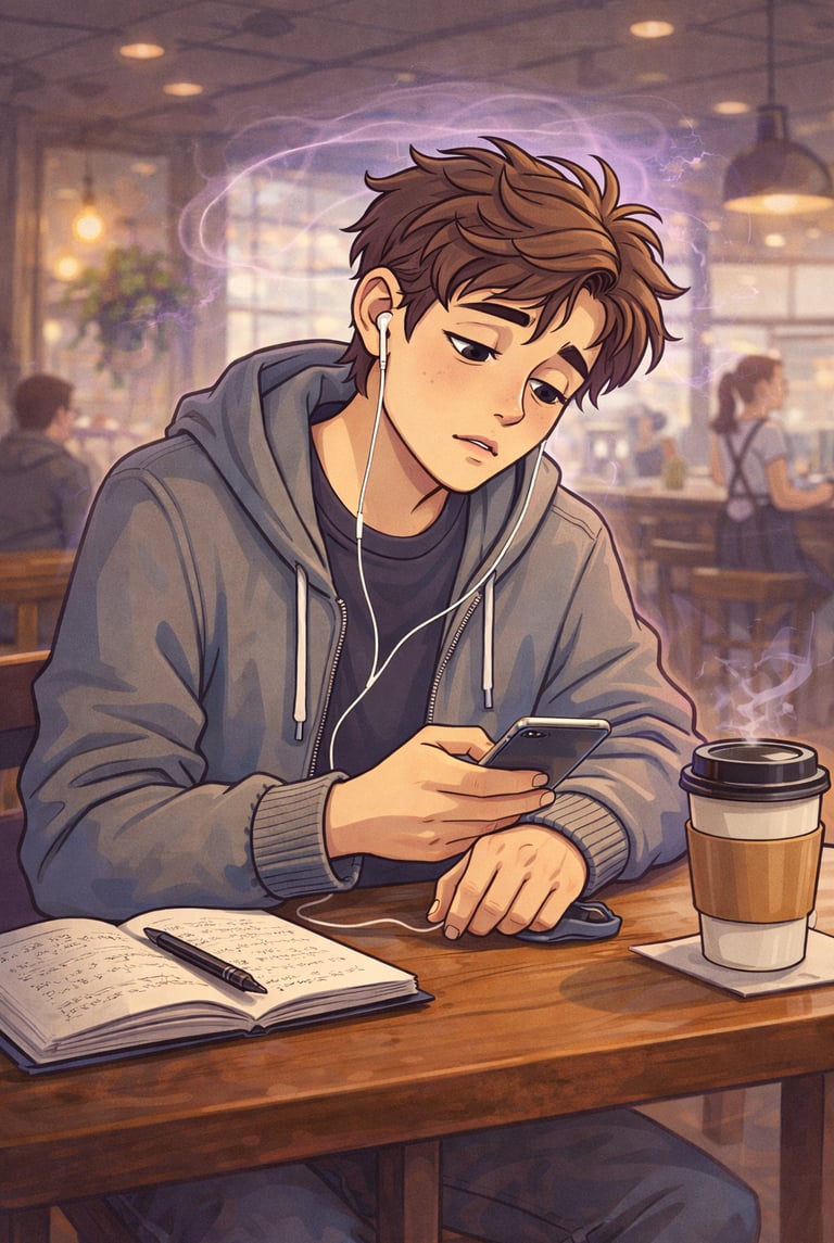 Inside, he could hear fragments of sound but could not organize them. He was present and not present at the same time. After about a minute, it ended. He blinked. The café returned to normal. But he felt exhausted and confused. The conversation around him seemed to have jumped forward without him. He could not remember exactly what had happened.